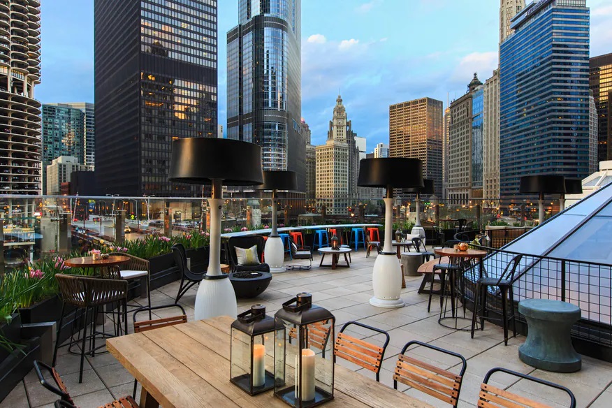 Located steps from the Theatre District, the award-winning hotel will enthral you from the moment you arrive until the day you say your goodbyes, with thoughtful amenities and world-class service. From the rooftop bar or 2nd floor lounge you can relax and take in the breathtaking views of the Chicago River and skyline.
