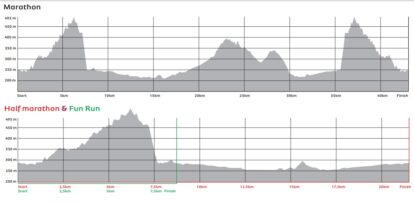 Change of Distance: If you decide to change distance during the race, ie. if a half marathon runner decides to follow the marathon route instead of the half marathon route, he or she will receive a medal but not an official time. The race result will read FNT (finished no time). The same applies for a marathon runner who changes distances during the race. All runners who change distances before race day will be registered accordingly and receive an official time.